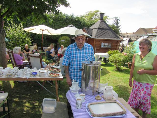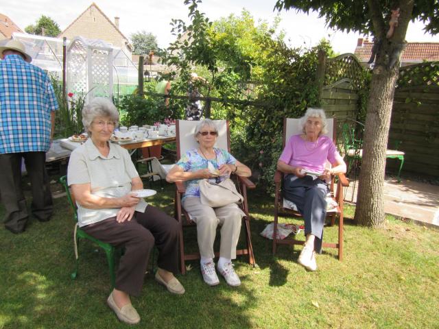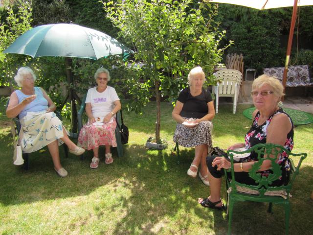 Jean Drew invited the ladies of the Women's Fellowship for a cream tea in her garden
