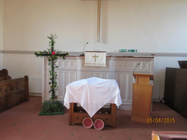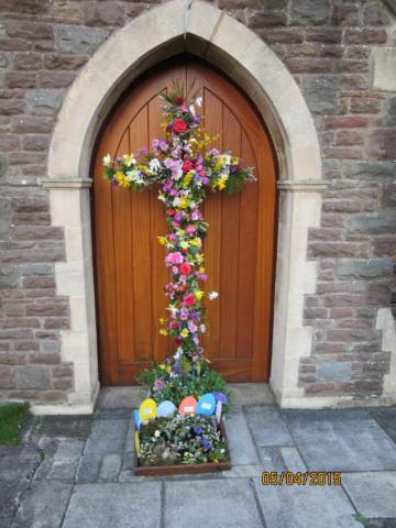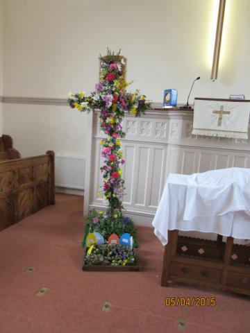 On Easter Sunday the bare cross was decorated, by all members of the congregation, with flowers to denote new life.